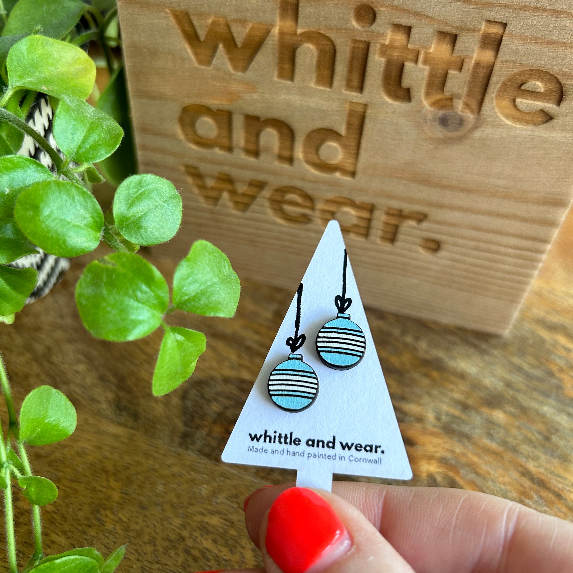 Christmas bauble studs. Blue with white