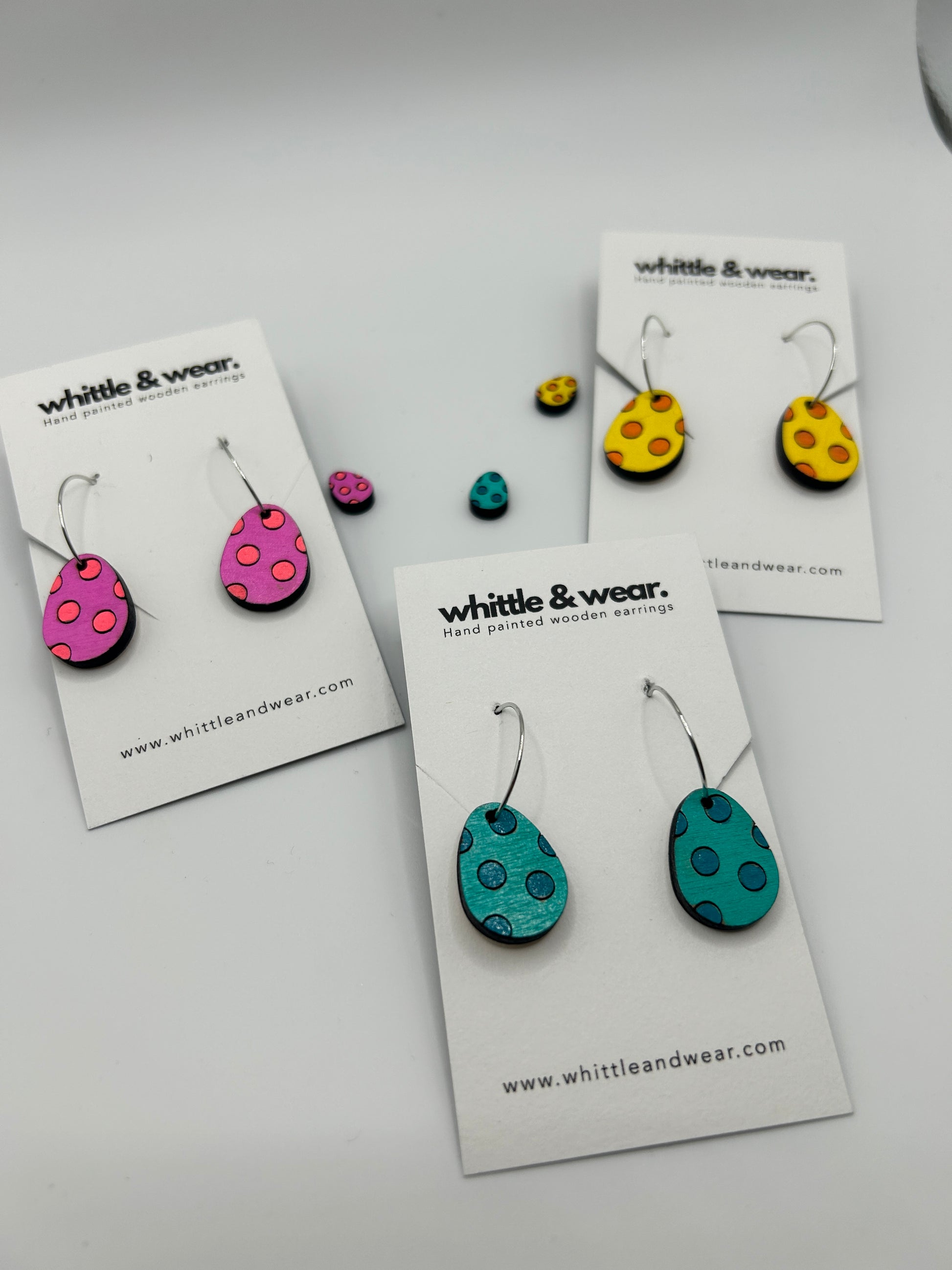 Hand painted and made with a surgical grade stainless steel hoops suitable for the most sensitive of ears